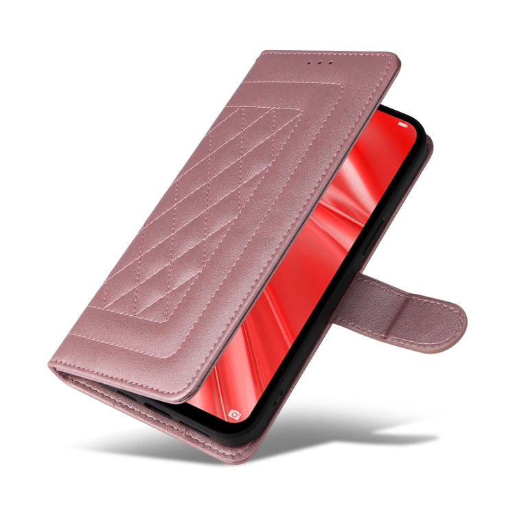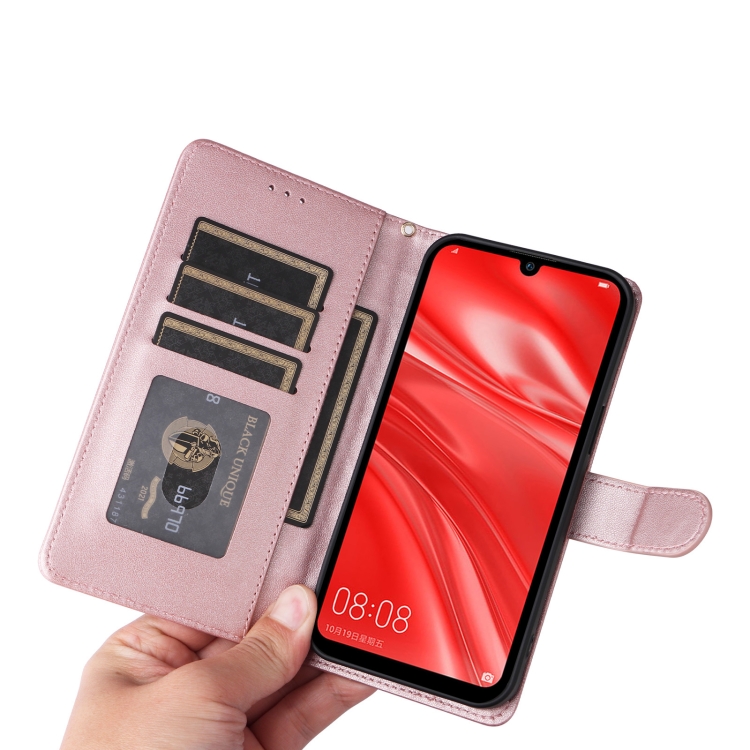 Funda de Cuero con Tapa para Huawei Enjoy 9S Diamond Lattice (Oro Rosa)