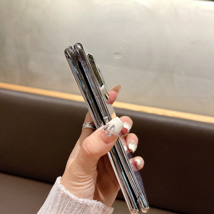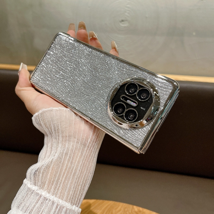 - 1x Estuche para Huawei Mate X3 y X5 con Hebilla Lateral y Cobertura Total de Papel con Purpurina Ondulada (Plata)