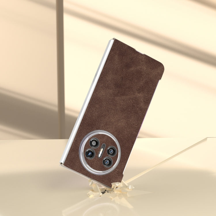Funda para Huawei Mate X5 con Borde Transparente Esmerilado de Cuero PU (Café)