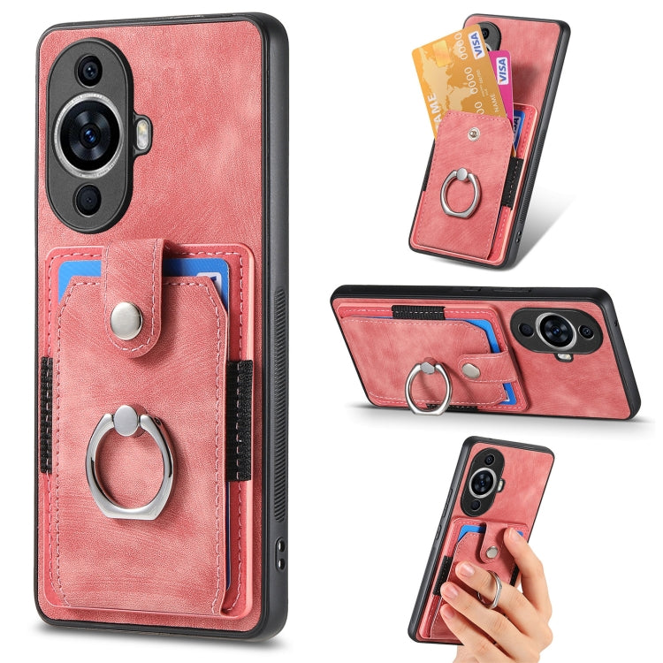 Funda para Huawei Nova 11 con Billetera, Tarjeta y Anillo con Piel Retro (Rosa)