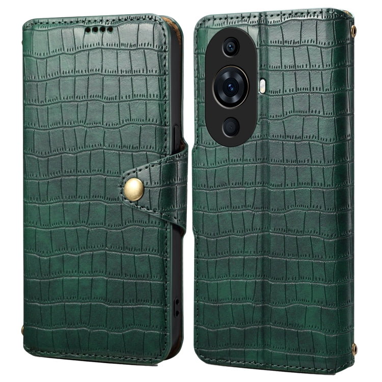 Funda para Huawei Nova 11 Pro Denior Cuero Borde de Aceite Textura Cocodrilo (Verde)