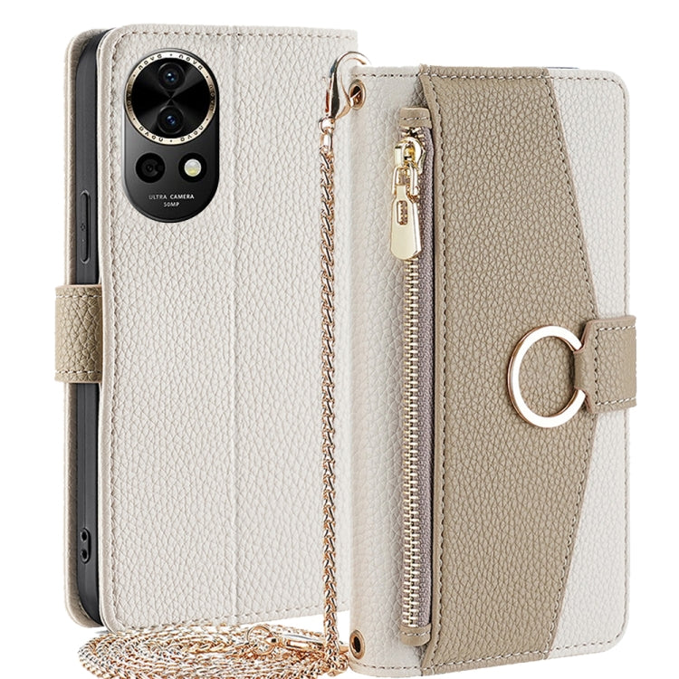 Funda Cruzada de Cuero con Textura Litchi para Huawei Nova 12 5G (Blanco)