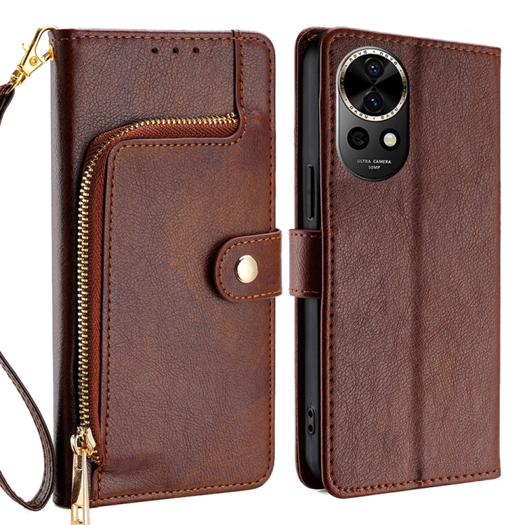 Funda de Cuero para Huawei Nova 12 5G con Bolsa y Cremallera (Marrón)