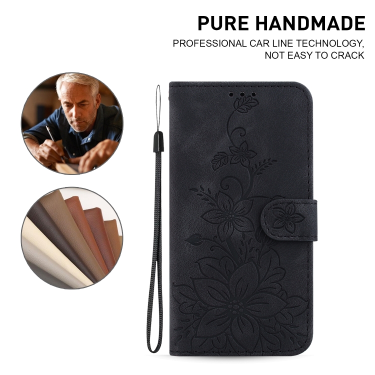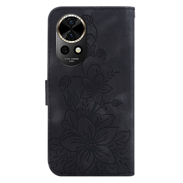 - 1x Funda de Cuero para Huawei Nova 12 con Relieve Lily (Negro)