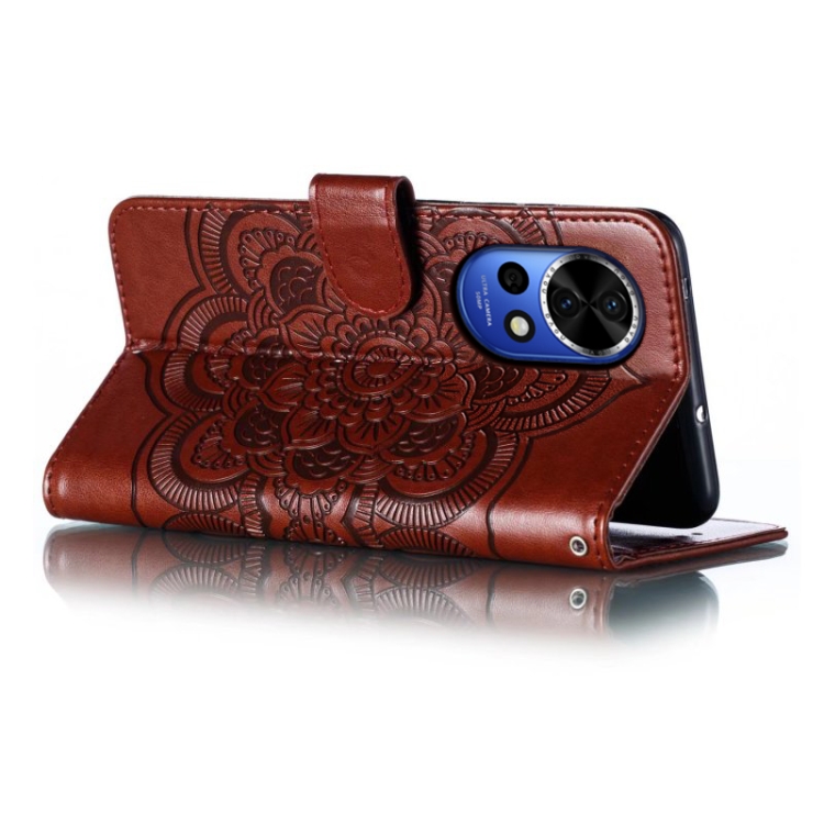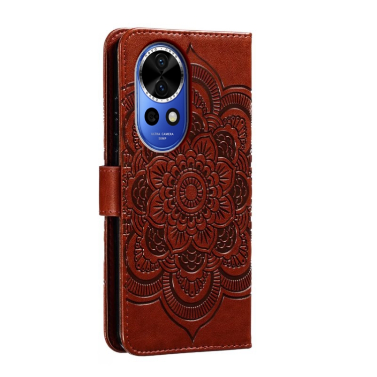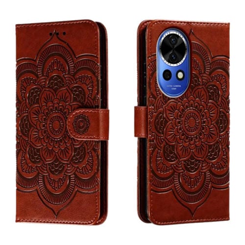 - 1x Funda de Cuero Huawei Nova 12 con Patrón en Relieve Sun Mandala (Marrón)