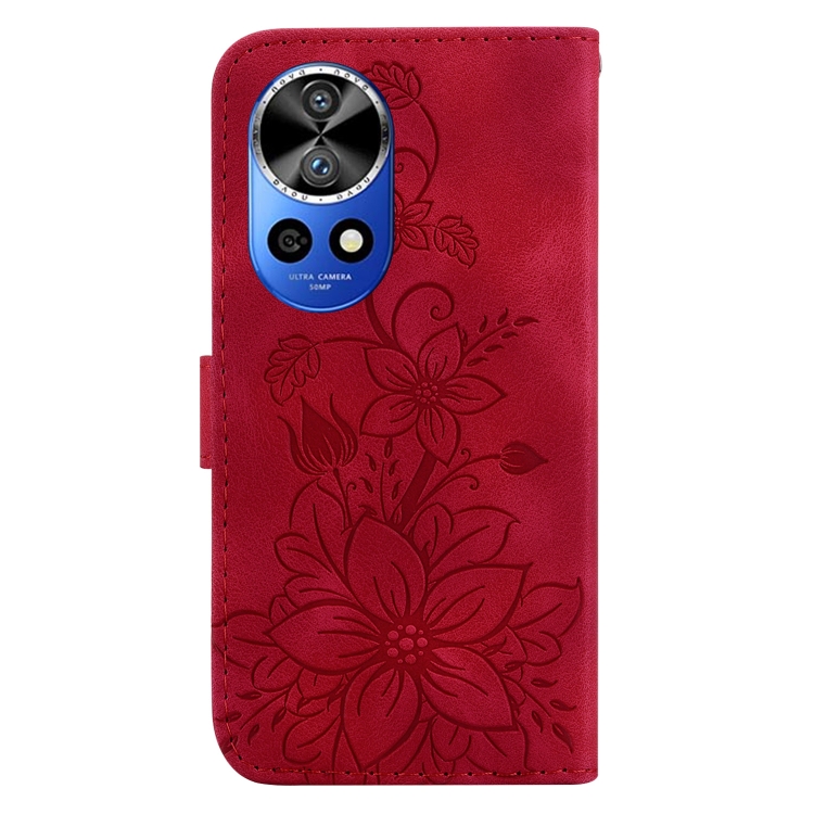 - 1x Funda de Cuero en Relieve para Huawei Nova 12 Pro Lily (Rojo)