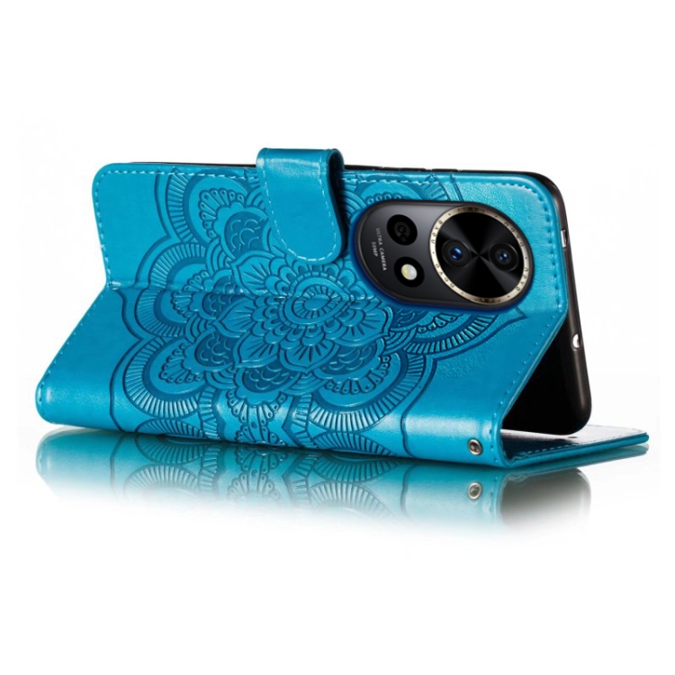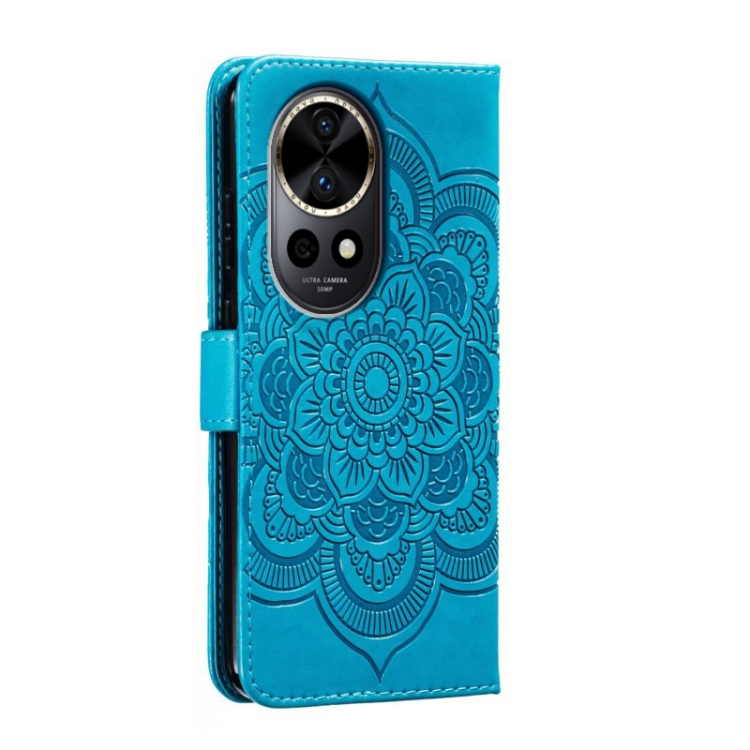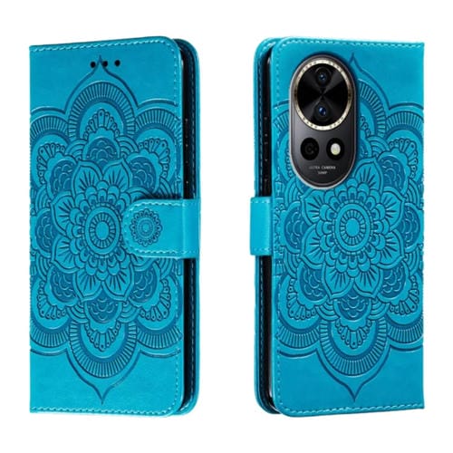 - 1x Funda de Cuero para Huawei Nova 12 Pro con Patrón Sun Mandala en Relieve (Azul)