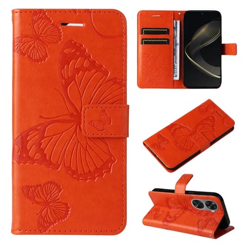 - 1x Funda para Huawei Nova 12 Se y Nova 11 Se de Cuero con Tapa y Patrón Mariposa 3D (Naranja)