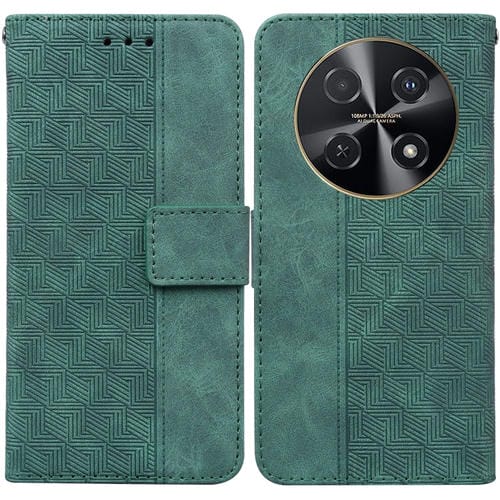 - 1x Funda de Cuero para Huawei Nova 12I 4G con Relieve Geométrico Global (Verde)
