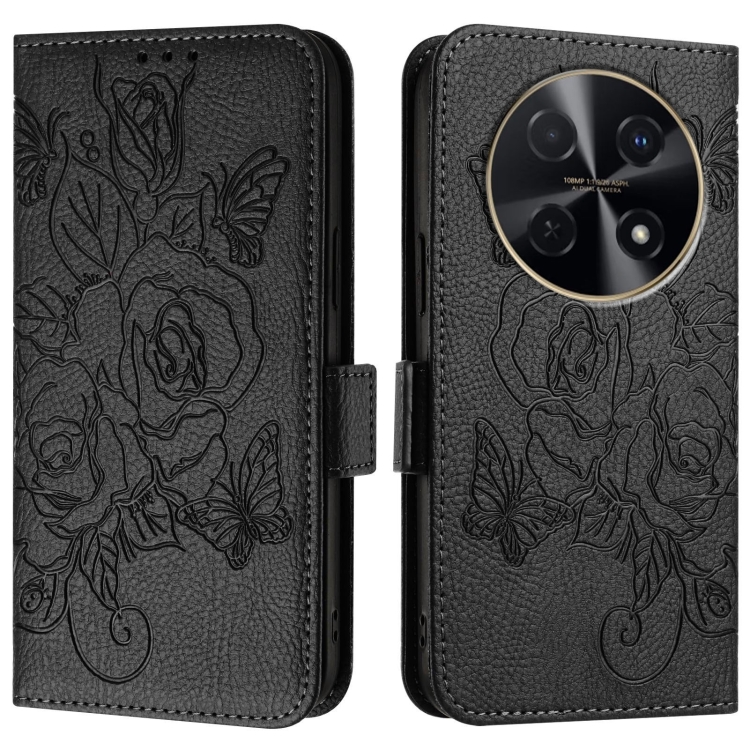 Funda de Cuero Antirrobo RFID para Huawei Nova 12I 4G con Relieve Rosa (Negro)