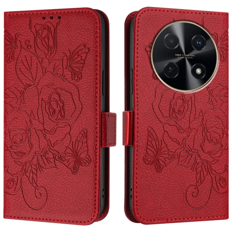 Funda de Cuero Antirrobo RFID para Huawei Nova 12I 4G con Relieve Rosa (Rojo)