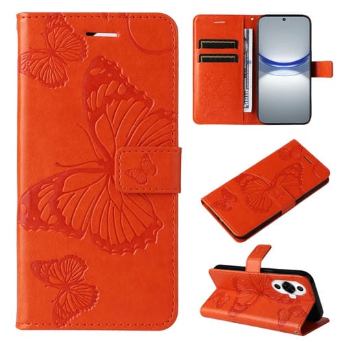 Funda para Huawei Nova 12S de Cuero con Tapa y Patrón en Relieve Mariposa 3D (Naranja)