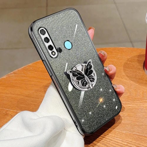 Funda TPU para Huawei Nova 5I con Soporte de Mariposa y Brillo Degradado (Negro)
