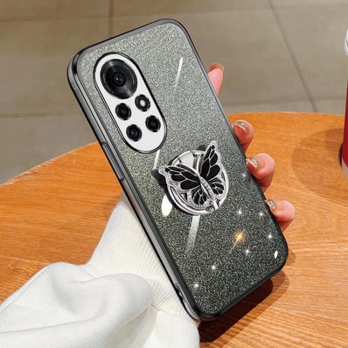 Funda TPU para Huawei Nova 8 Pro con Soporte Mariposa y Brillo Degradado (Negro)