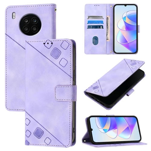 - 1x Funda de Cuero Skin Feel para Huawei Nova 8I en Relieve (Púrpura Claro)