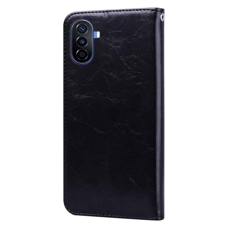Funda de Cuero para Huawei Nova Y70 y Y70 Plus con Textura de Cera de Aceite (Negro)