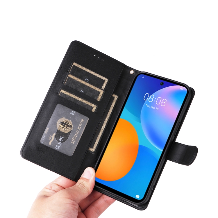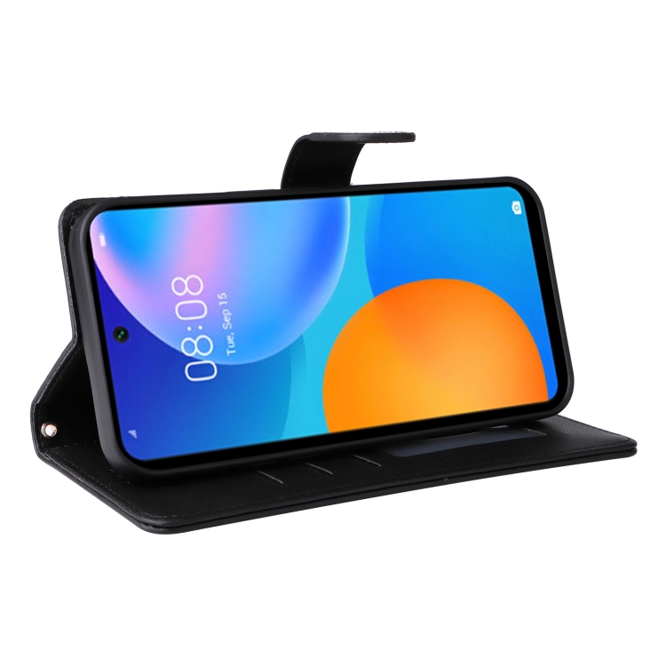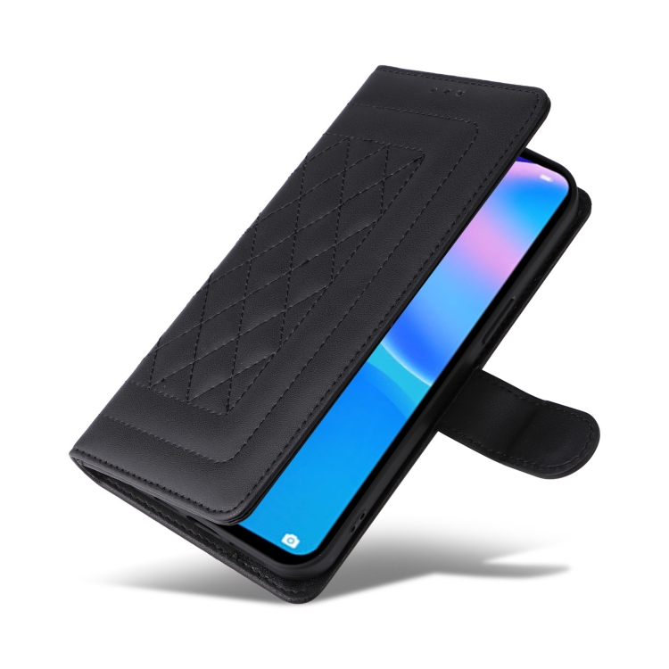 Funda para Huawei P Smart 2021 con Tapa de Cuero y Entramado de Diamantes (Negro)