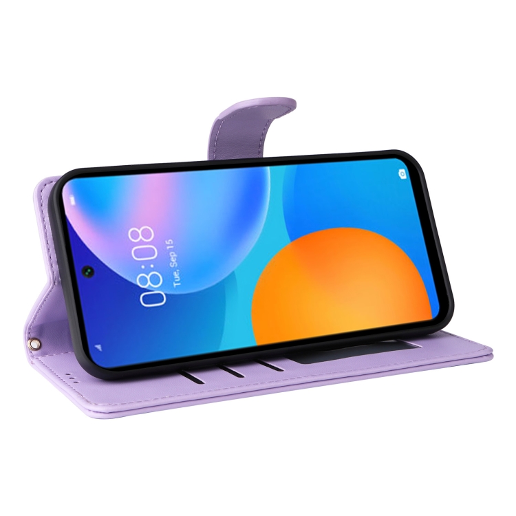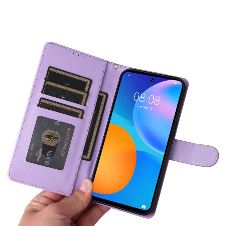 Funda para Huawei P Smart 2021 con Tapa de Cuero Diamond Lattice (Púrpura Claro)