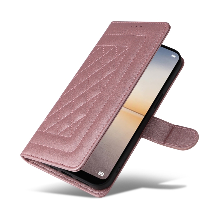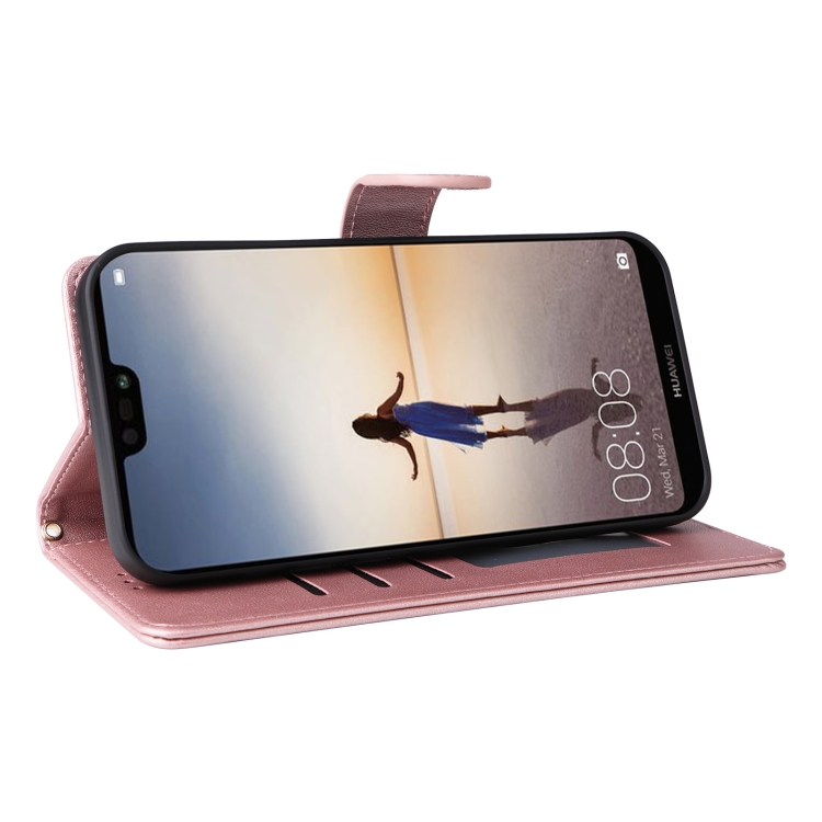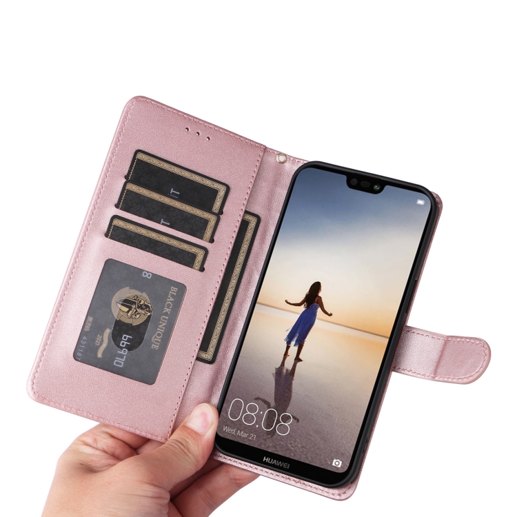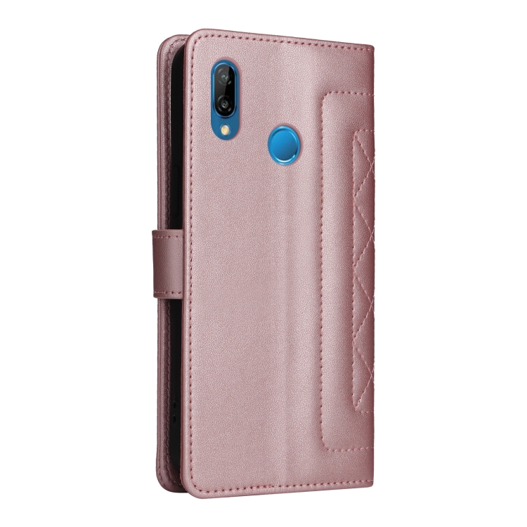 Funda de Teléfono Huawei P20 Lite con Tapa de Cuero Diamond Lattice (Oro Rosa)