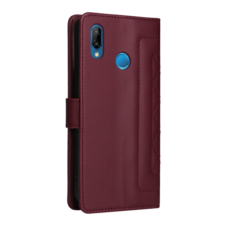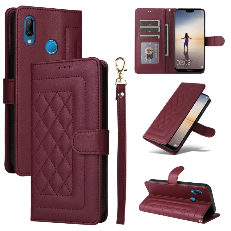 Funda para Huawei P20 Lite con Tapa de Cuero Diamond Lattice (Rojo Vino)