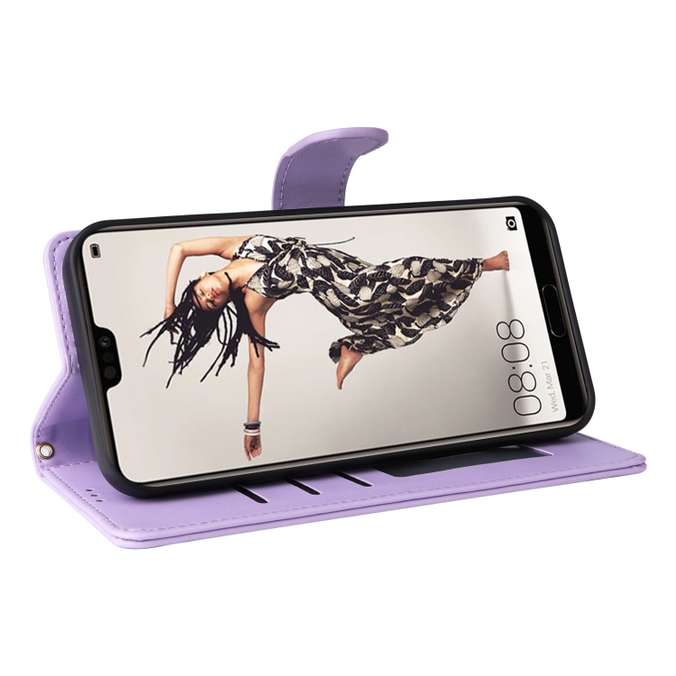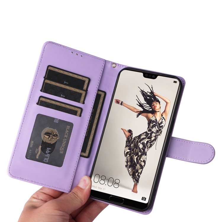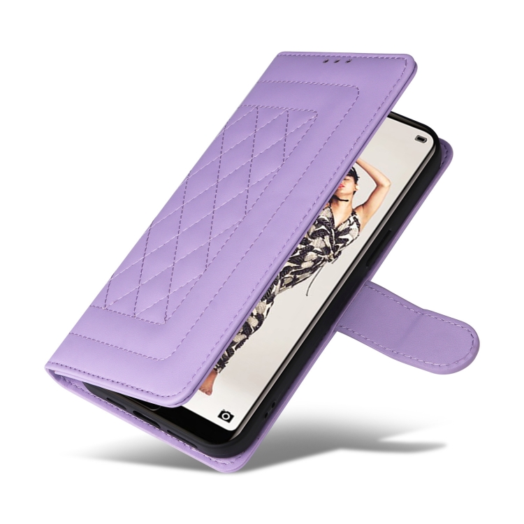 Funda de Teléfono Huawei P20 Pro con Tapa de Cuero Diamond Lattice (Púrpura Claro)