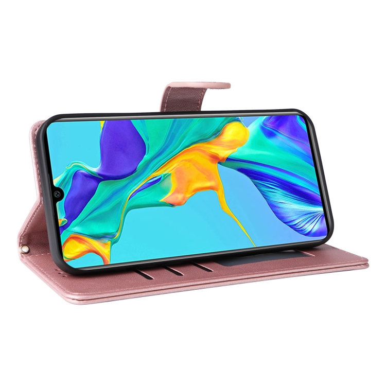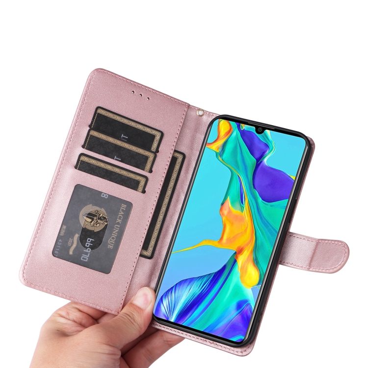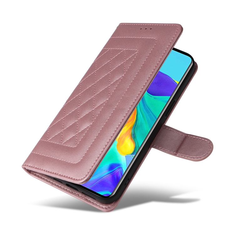 Funda de Teléfono Huawei P30 con Tapa de Cuero Diamond Lattice (Oro Rosa)