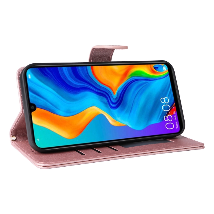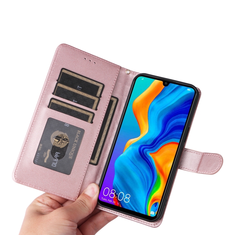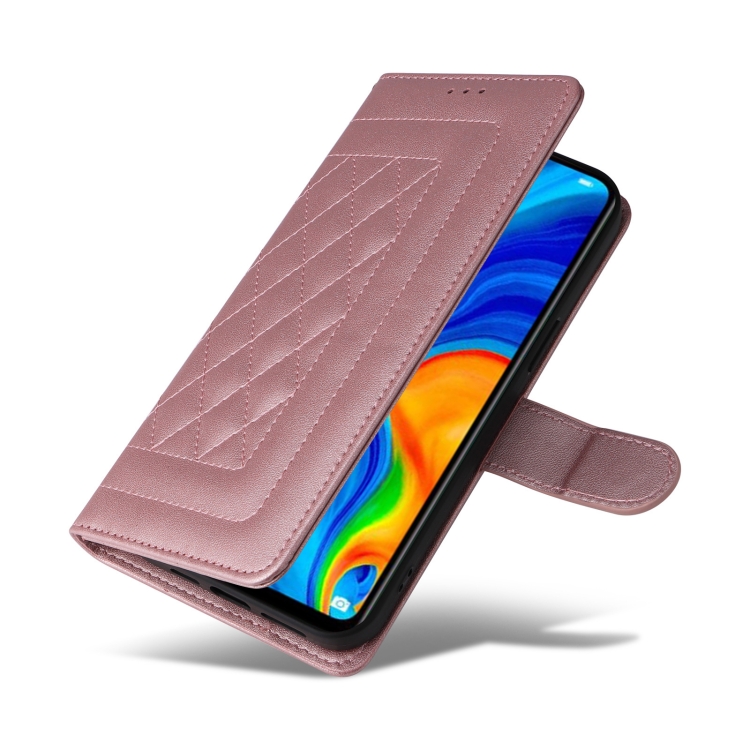 Funda de Teléfono Huawei P30 Lite con Tapa de Cuero Diamond Lattice (Oro Rosa)
