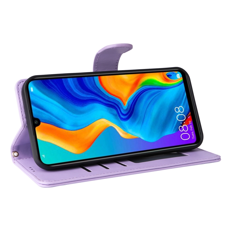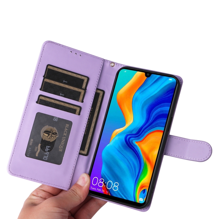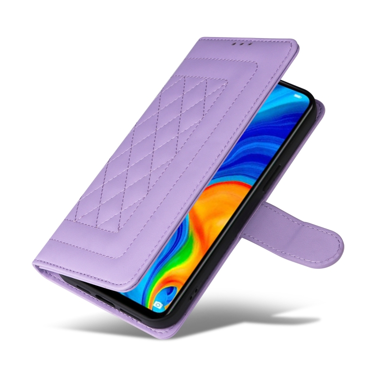 Funda de Teléfono Huawei P30 Lite con Tapa de Cuero Diamond Lattice (Púrpura Claro)
