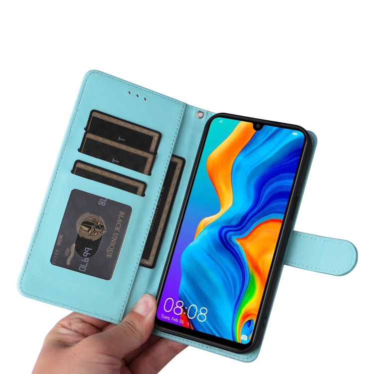 Funda de Teléfono Huawei P30 Lite con Tapa de Cuero Diamond Lattice (Verde Menta)