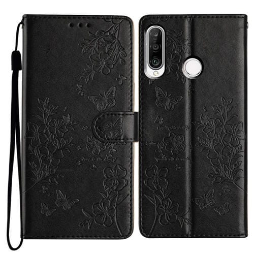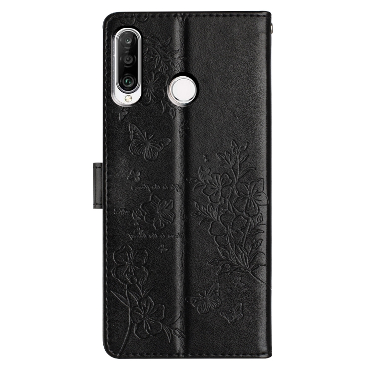 Funda para Huawei P30 Lite de Cuero con Relieve Flor Amor y Mariposa (Negro)