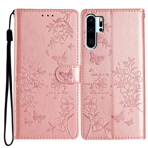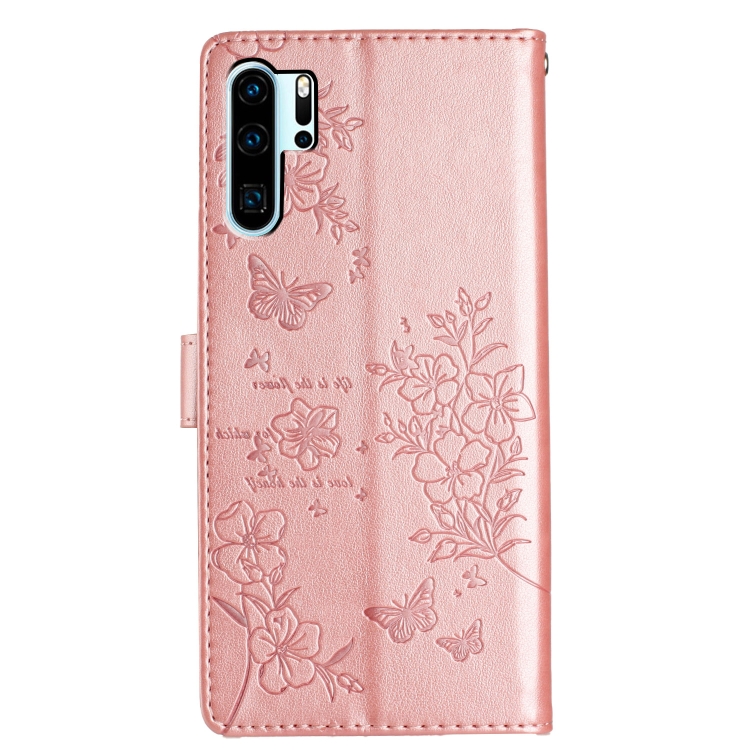 - 1x Funda de Cuero Huawei P30 Pro Butterfly Love Flower en Relieve (Oro Rosa)