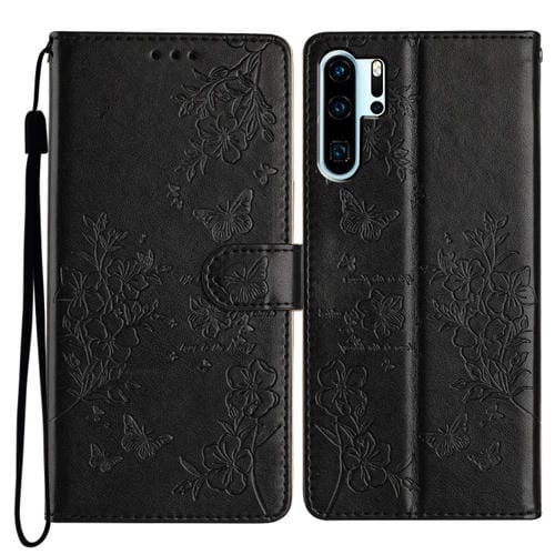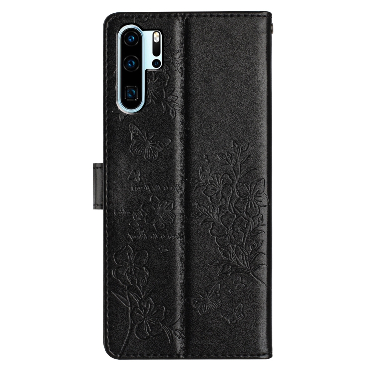 - 1x Funda de Cuero para Huawei P30 Pro Butterfly Love Flower en Relieve (Negro)