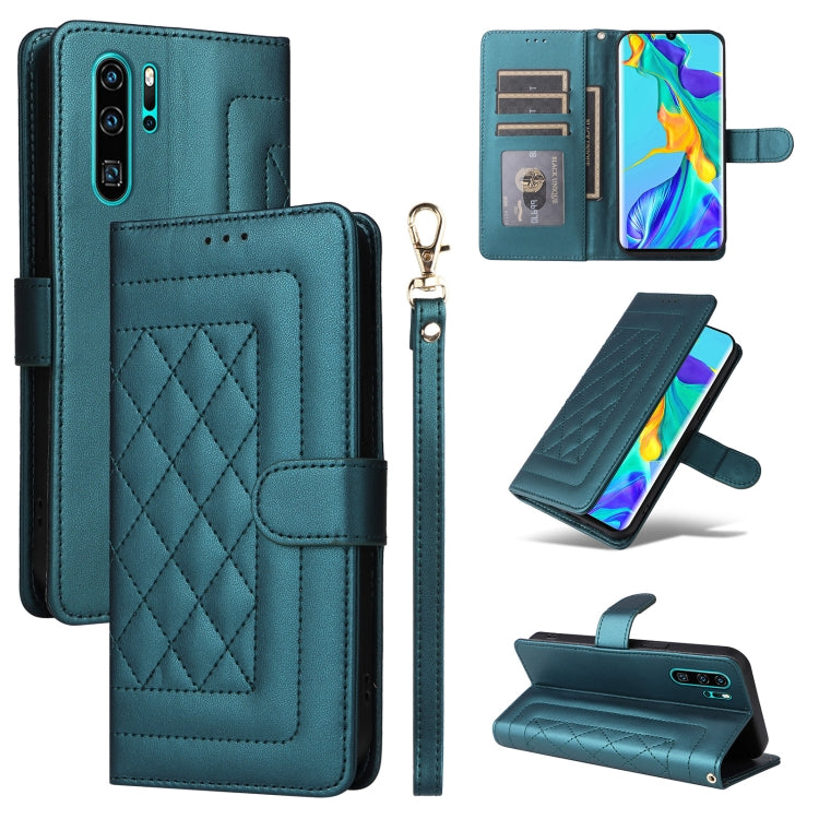 Funda de Cuero con Tapa para Huawei P30 Pro Diamond Lattice (Verde)