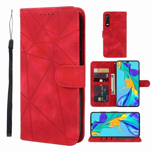 - 1x Funda de Cuero para Huawei P30 con Líneas Geométricas (Rojo)