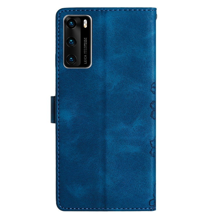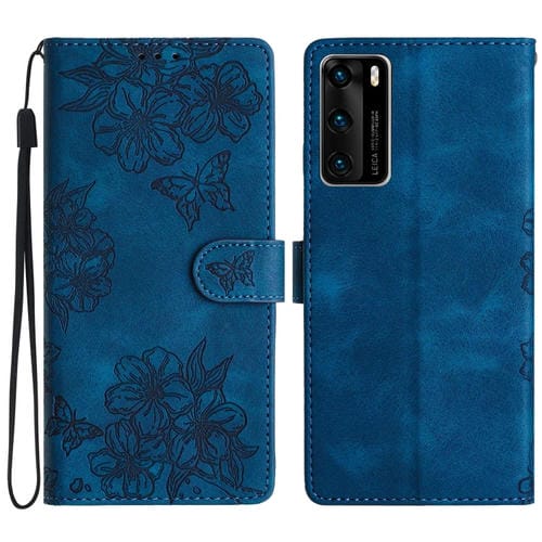 Funda para Huawei P40 Cherry Blossom Butterfly Skin Feel de PU en Relieve (Azul)
