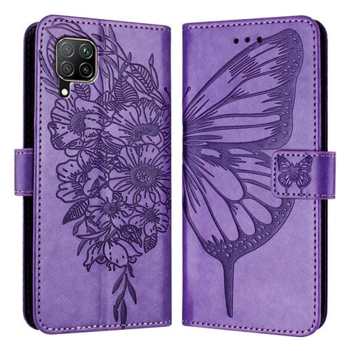 Funda de Cuero para Huawei P40 Lite 4G y Nova 6 Se con Mariposa en Relieve (Púrpura)