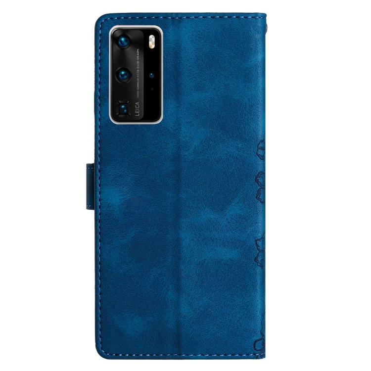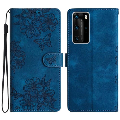 Funda para Huawei P40 Pro Cherry Blossom Butterfly Skin Feel de PU en Relieve (Azul)