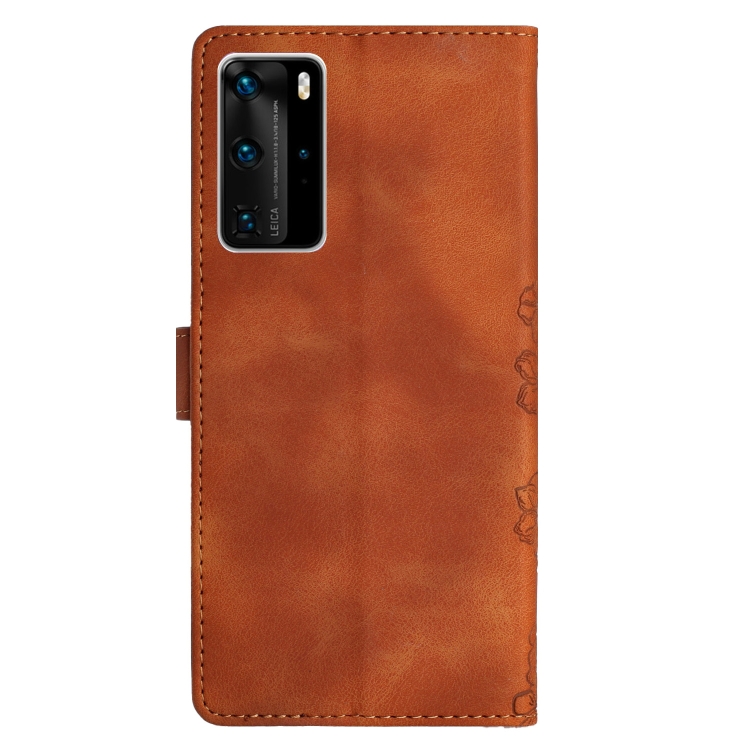 Funda para Huawei P40 Pro Cherry Blossom Butterfly Skin Feel de PU en Relieve (Marrón)