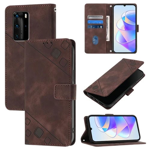 - 1x Funda de Cuero para Huawei P40 Pro Skin Feel en Relieve (Marrón)