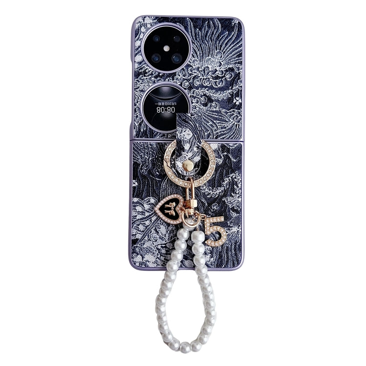 Funda para Huawei P50 Cobertura Total Bordado con Cadena de Cuentas de Anillo (Azul)