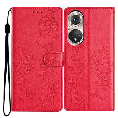 • 1x Funda de Cuero para Huawei P50 Pro Butterfly Love Flower en Relieve (Rojo)