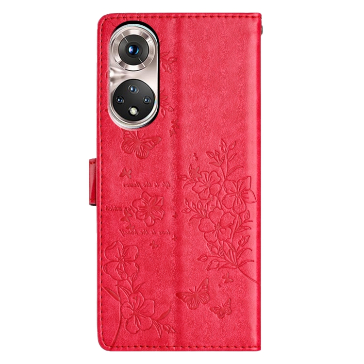 Funda de Cuero para Huawei P50 Pro Butterfly Love Flower en Relieve (Rojo)