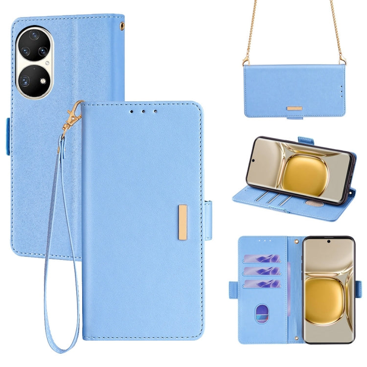 Funda de Cuero para Huawei P50 Pro con Cadena Cruzada (Azul)