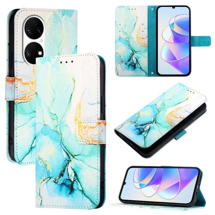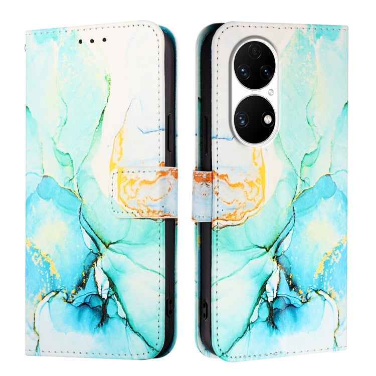 Funda de Cuero para Huawei P50 Pt003 con Tapa y Patrón de Mármol (Verde)