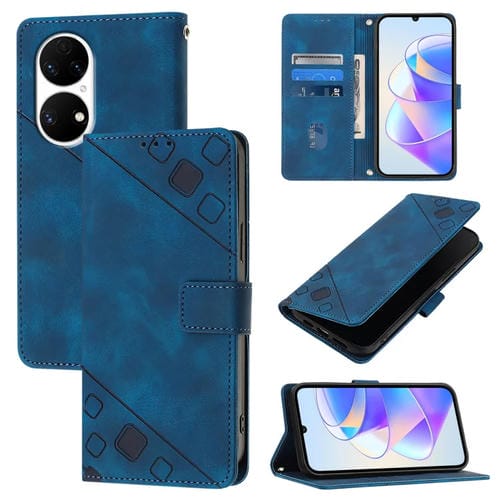 Funda de Cuero para Huawei P50 Skin Feel en Relieve (Azul)