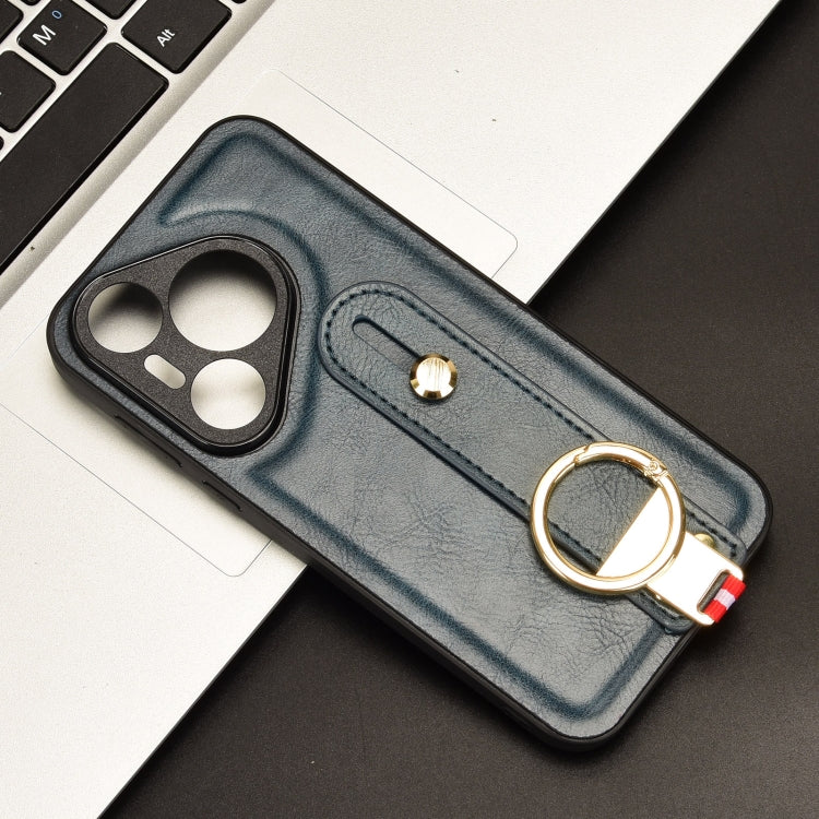 Funda Trasera de Cuero para Huawei Pura 70 5G con Pulsera (Azul)