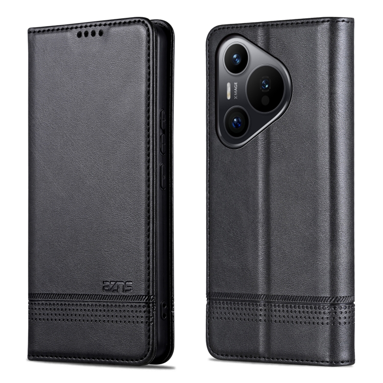 Funda para Huawei Pura 70 Azns de Cuero con Tapa y Textura de Becerro Magnética (Negro)