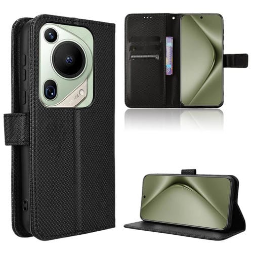 Funda de Cuero para Huawei Pura 70 con Textura de Diamante Ultra (Negro)