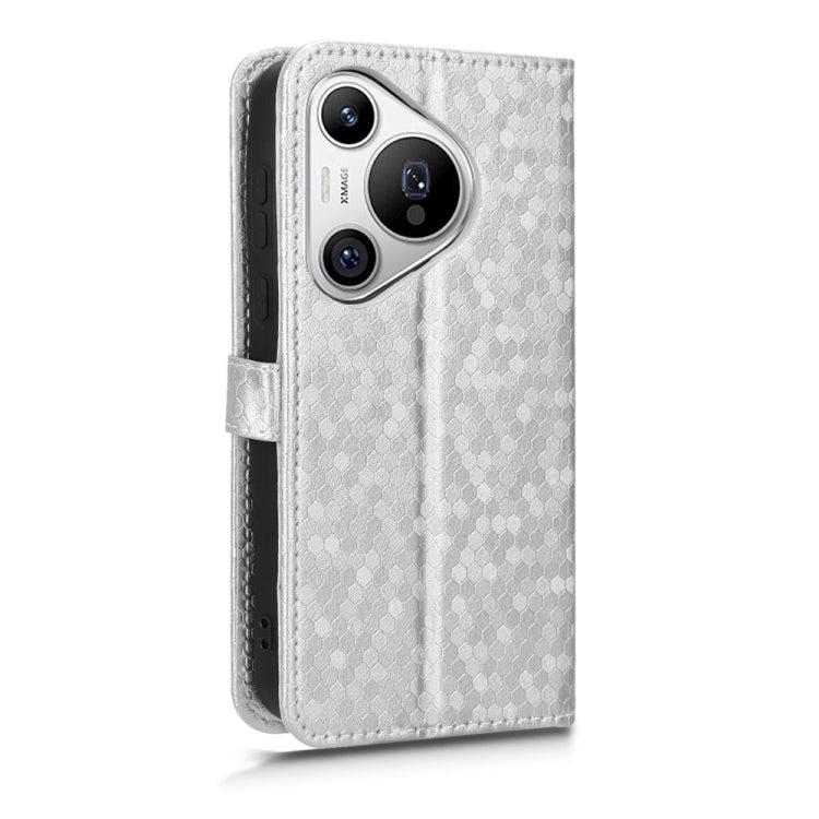 Funda de Cuero para Huawei Pura 70 con Textura de Punto de Panal (Plateado)