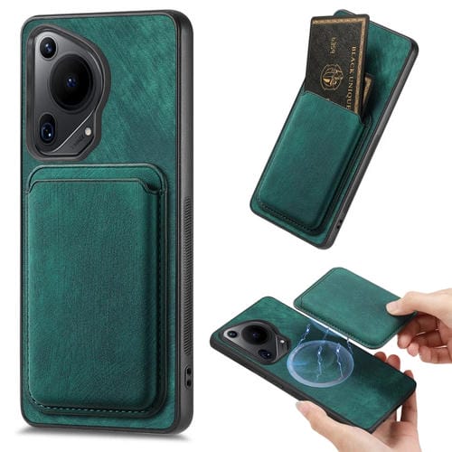 Funda magnética para Huawei Pura 70 con bolsa de tarjeta de Cuero retro (Verde)